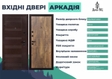 Двері БЦ-Аркадія стильна та індивідуальньна: ✔️ розміри дверного блоку (860/960) /2050;✔️ товщина дверного полотна – 65 мм, товщина МДФ накладок – 8 мм, лиштва змонтована;✔️ дверний короб – 90 мм з цільногнутого профілю 1,2 мм;✔️ 2 контури ущільнення поліуретановим євроущільнювачем;✔️ 2 завіси підшипникового типу;✔️ основний циліндровий замок [14 мм ригелі];✔️ додатковий сувальдний замок [14 мм ригелі];✔️ фурнітура Quadro black;✔️ лаконічне фрезерування;✔️ виражена структура дерева на плівці;✔️ покриття металевої конструкції «темне»;✔️ утеплення мінеральною ватою;✔️ антизрізи та анкерні кріплення в комплекті.Зовнішня сторона дверей виконана у глибокому коричньовому кольорі, внутрішня — у темно медовому. Вони неодмінно стануть родзинкою твого передпокою, адже створені для тих, хто полюбляє практичність та мінімалізм з фокусом на окремі деталі.